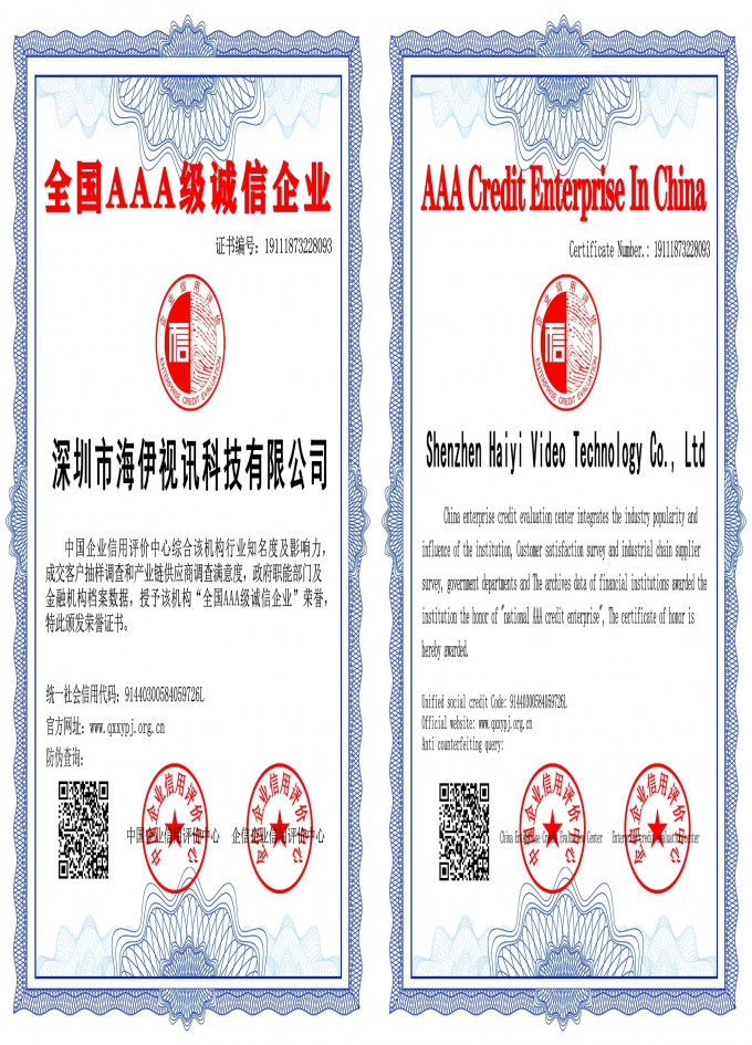 深圳市海伊視訊科技有限公司成立于2011年注冊資本總額(人民幣)1000.0000萬元,是集研發、生產、銷售、安裝、服務為一體的安防智能產品生產制造商,是 無線音視頻智能產品及視頻應急指揮調度大數據管理平臺的提供商 。公司嚴格遵循ISO9001標準的管理體系,優秀的銷售、服務、反饋的管理體系,建立以知識經濟為基礎,以科技力量為核心的企業管理體系,公司設立了技術與產品研發中心,有自主知識產權并擁有安防著名品牌HiYiAV(海昱視) 、HiYiVision(海伊視訊)。公司秉承 以人才為本!以科技創新!以誠信經營!以服務取勝! 的企業經營理念。 深圳海伊視訊公司有單兵系列/布控球系列/車載系列/無人機圖傳系列,主要產品有4G高清單兵執法儀、4G5G高清布控球、4G高清應急指揮箱、1080P高清車載云臺攝像機、4G/5G高清車載錄像機、車載SD錄像機、車載硬盤錄像機、4G5G無線遠程監控、無人機圖傳、WiFi車載監控錄像系統、網絡攝像機;以及4G無線視頻監控平臺、無線視頻應急指揮調度的大數據管理云平臺。都基于安防監控技術,圖像分析傳感技