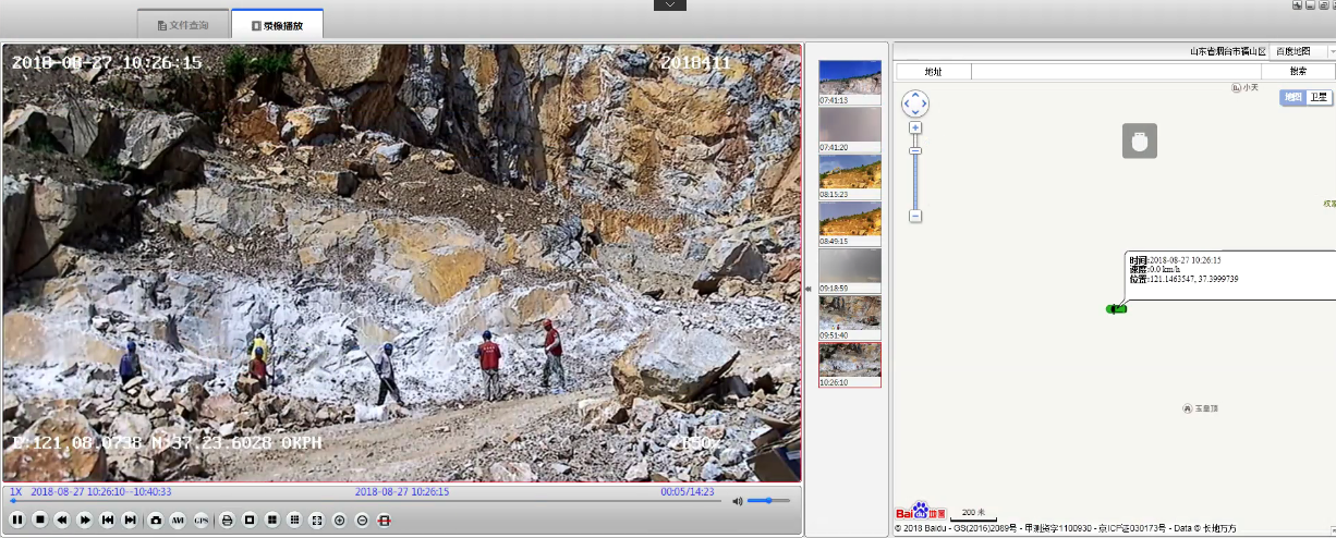 二是盯住“運”,配套安裝“車載GPS、4G遠程音視頻監控”系統,實施民用爆炸物品運輸環節全方位安全監管。按照《4G警用GPS指揮調度管理系統建設方案》的要求,對全市民爆銷售企業、爆破作業單位的民用爆炸物品配送車輛安裝了車載GPS衛星定位和4G遠程音視頻監控系統,對民爆物品出庫品種、數量、途經線路、運達地領取、發放情況實行報告驗收制度,對駕駛、押運人員以及保管、爆破、安全項目技術負責人等作業人員規范作業進行有效監督。實現了對全市民用爆炸物品配送車輛網上監控和跟蹤管理。管理人員通過智能監控平臺實時掌握運輸車輛動態管控,確保了民爆物品配送環節的安全。