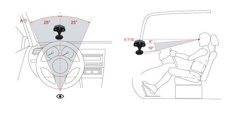 DSM及ADAS的攝像機安裝需要特別注意安裝角度。