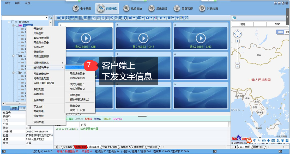 右鍵車輛——控制模塊菜單,下發(fā)文字信息