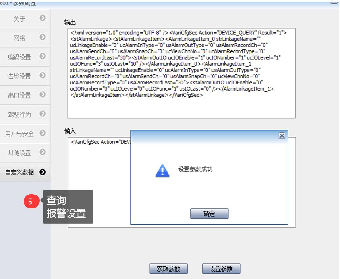 <VariCfgSec Action="DEVICE_SET"><stAlarmLinkage><stAlarmLinkageItem><AlarmLinkageItem_0><stAlarmOutIO ucIOEnable="1" ucIONumber="1" usIOLast="5" /></AlarmLinkageItem_0></stAlarmLinkageItem></stAlarmLinkage></VariCfgSec>