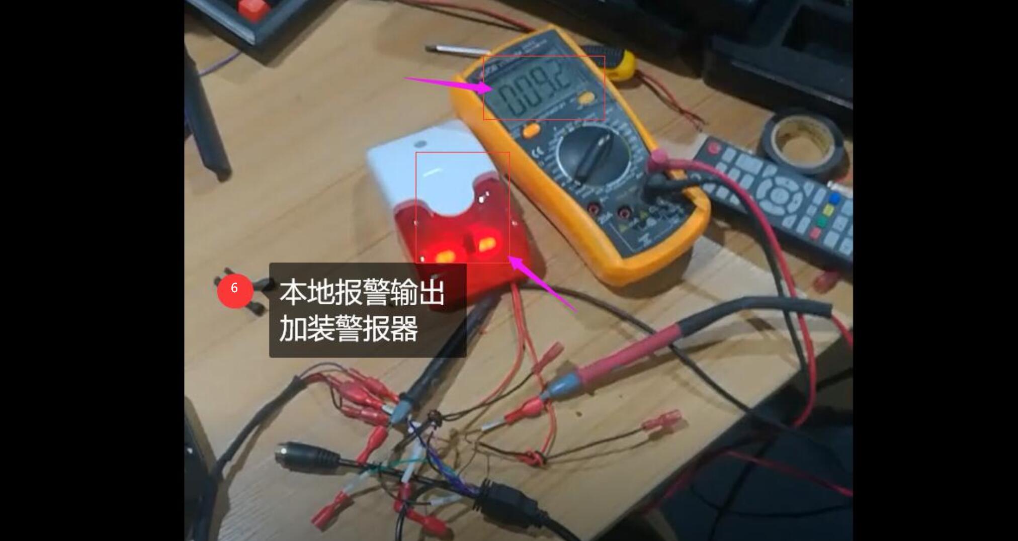 報警輸出IO OUT上面接上警報器,當有報警輸入時,會觸發警報器閃警燈同時鳴笛,起到本地報警的功能