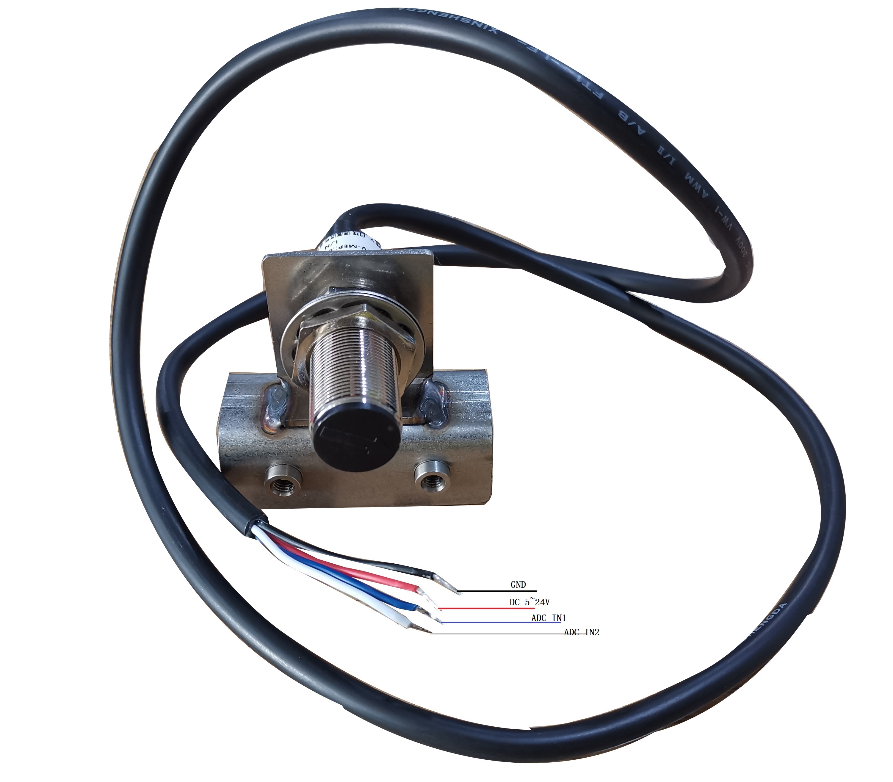 傳感器藍色線接ADC的正反轉功能,白色線接ADC的脈沖輸入功能,其他兩根為電源線,供電方式為直流DC5V~24V。