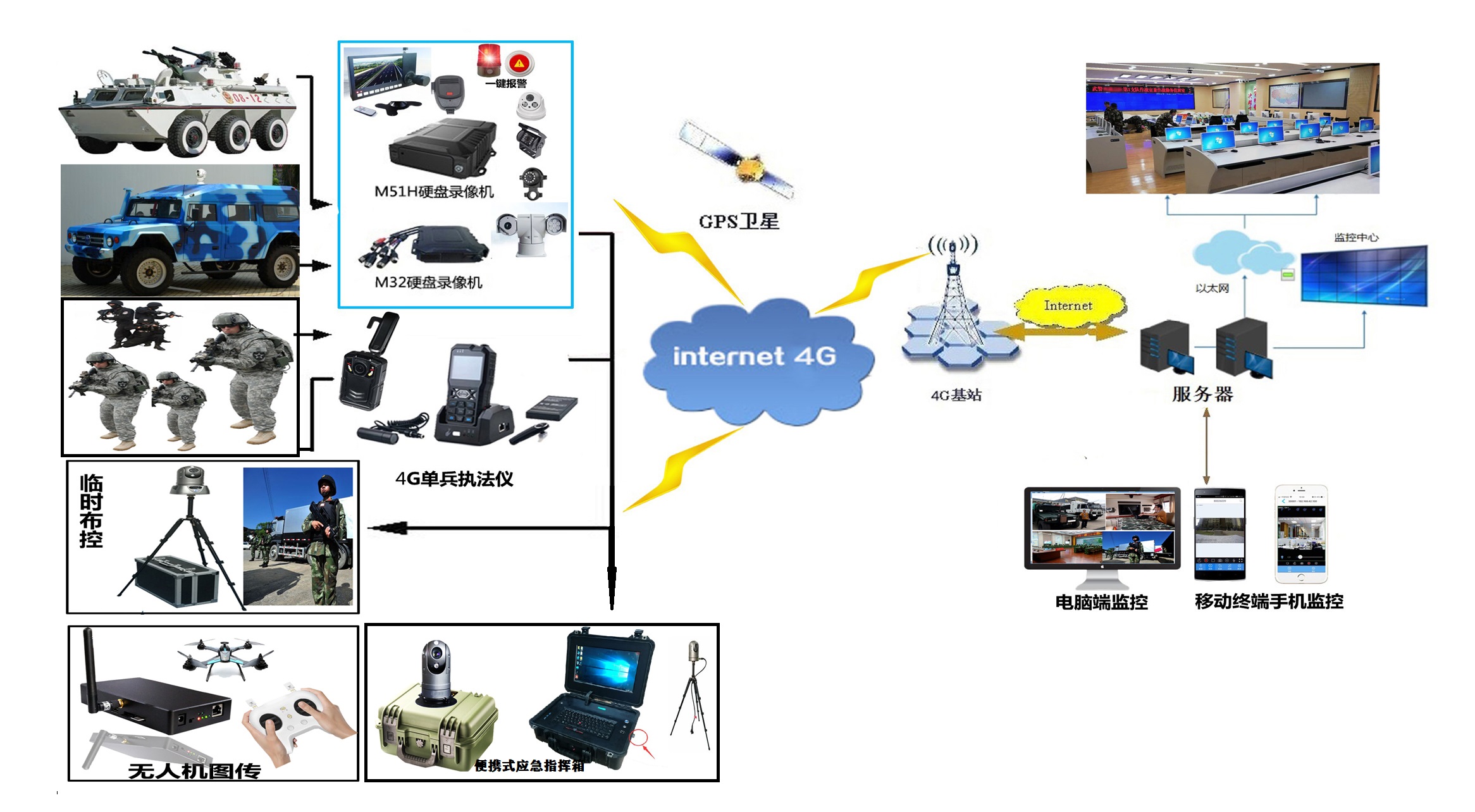 武裝警察部隊是擔負國家賦予的安全保衛任務的部隊。近年來,隨著武警部隊擔負維護社會穩定的任務日益繁重,對武警部隊應急指揮和處置能力提出了更高的標準和要求。為了適應信息化軍事變革,使武警部隊在執行處置突發事件、反恐等任務中能及時準確的傳送信息,精準打擊目標(監控現場)的狀況,進而采取科學有效的指揮調度方案,提高指揮效率,更好地履行維護社會安全穩定的神圣使命,武警部隊對指揮通信系統提出了更高的要求。