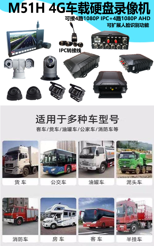 M51Hv車載NVR支持4路1080高清IPC或4路AHD車載錄像機