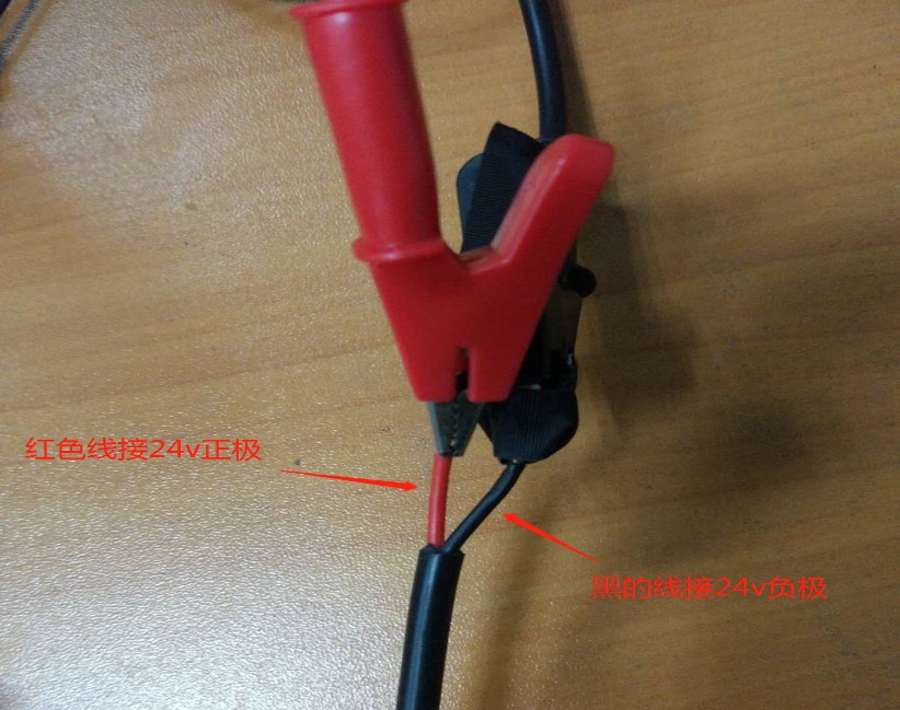 下圖為液位變送器電源線連接方式,紅色線接24v電源正極,黑色線接24v電源負極。