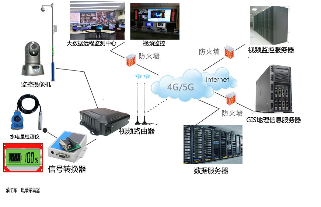 液位計及電量表通過串口跟4G主機對接,串口透傳數據通過4G把前端的液位計及電量表的數據傳輸到中心,實現遠程實時監測。實際應用于消防車的水箱監測,消防車的電瓶電量監測。