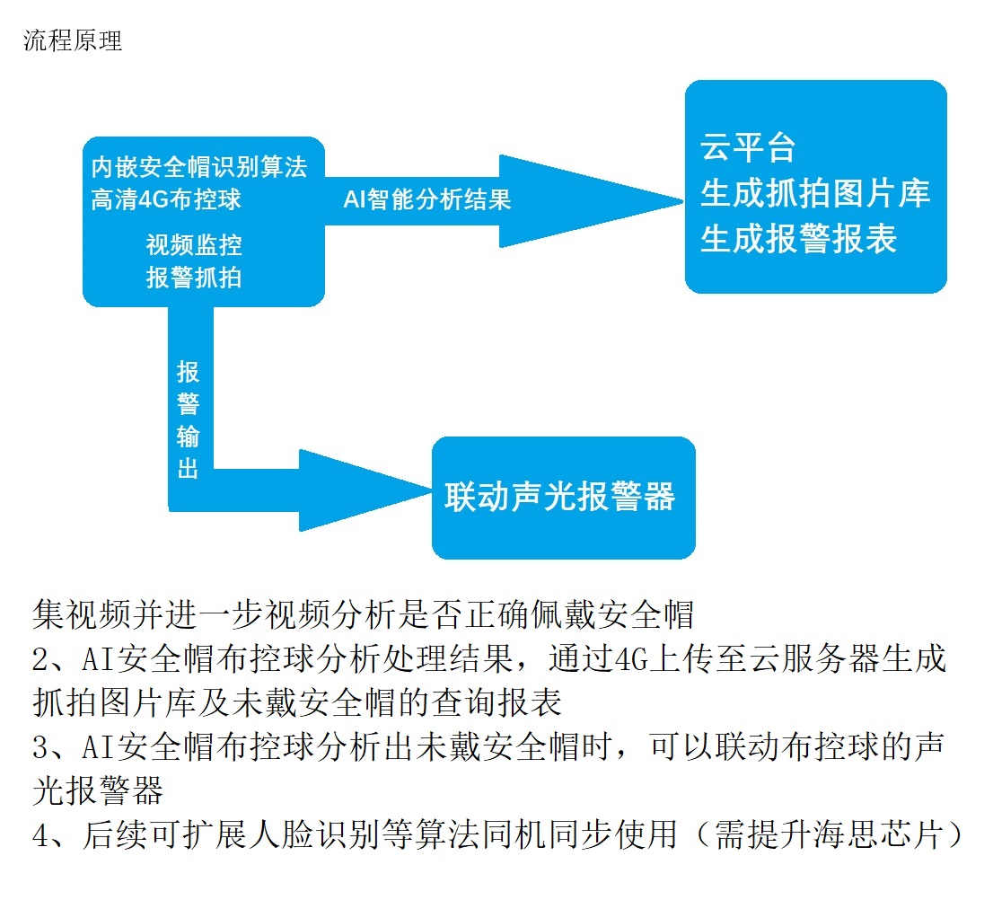 AI識別智能布控球基于前端邊緣AI計算及后端云平臺計算,AI布控球集成人臉識別、安全帽識別等的AI視頻圖像分析算法,通過計算機視覺技術對圖像、人臉、場景、視頻等進行深度學習,識別并標示圖像、場景、視頻內容,并對自定義的行為、意圖進行識別并預警。