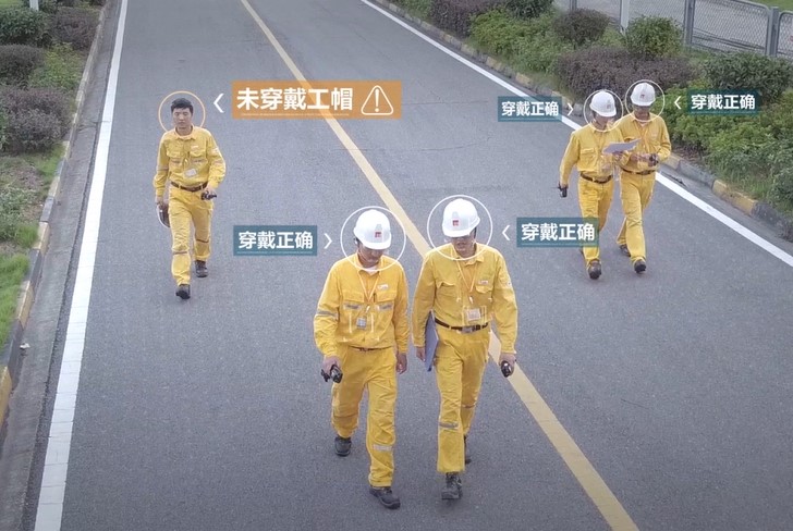 安全帽佩戴檢測,對未佩戴安全帽則實時報警,提醒現場工作人員佩戴安全帽。