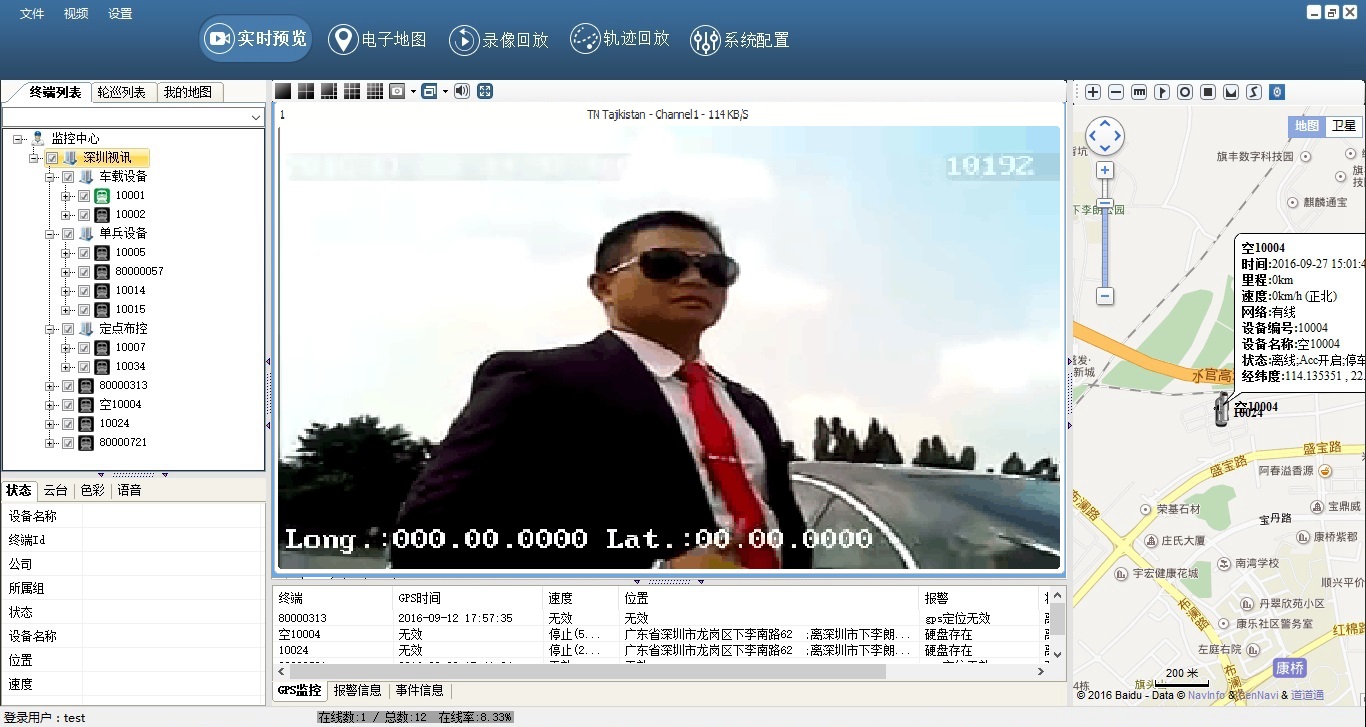39、支持在GIS地圖上點擊任意攝像機查看實時視頻和歷史錄像。